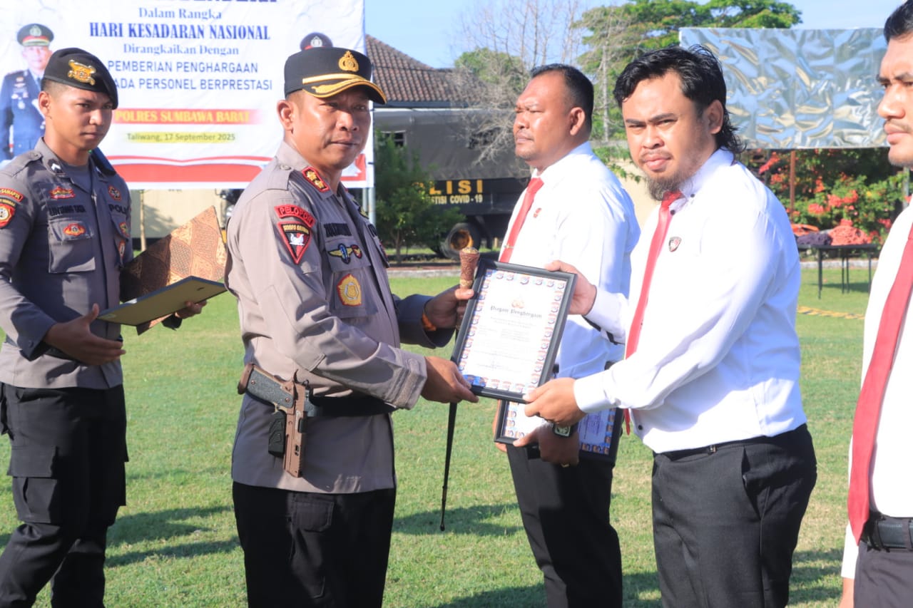 Polres Sumbawa Barat Apresiasi Personel Berprestasi dalam Upacara Hari Kesadaran Nasional