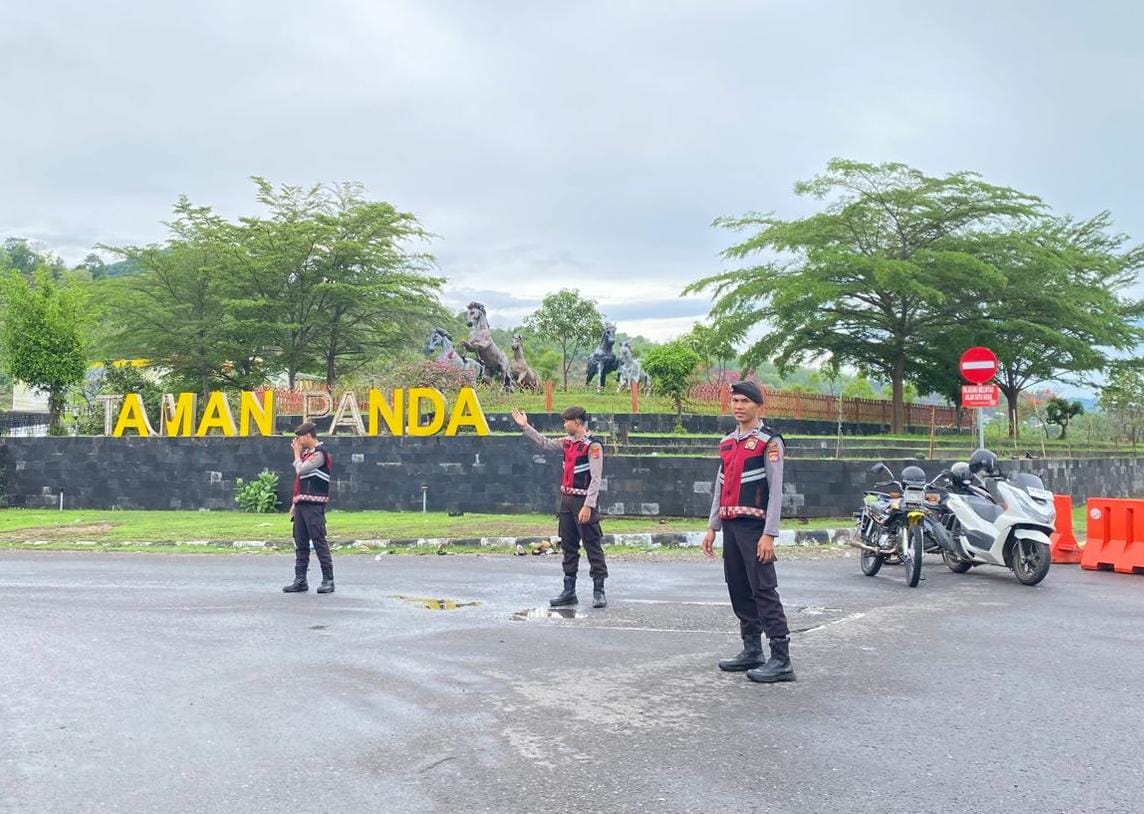 Minggu 9 November 2025 sekira pukul 06.00. Wita terlihat petugas melakukan pengaturan Arus Lalulintas di pertigaan patung kuda Desa Panda Kecamatan Palibelo Kabupaten Bima.