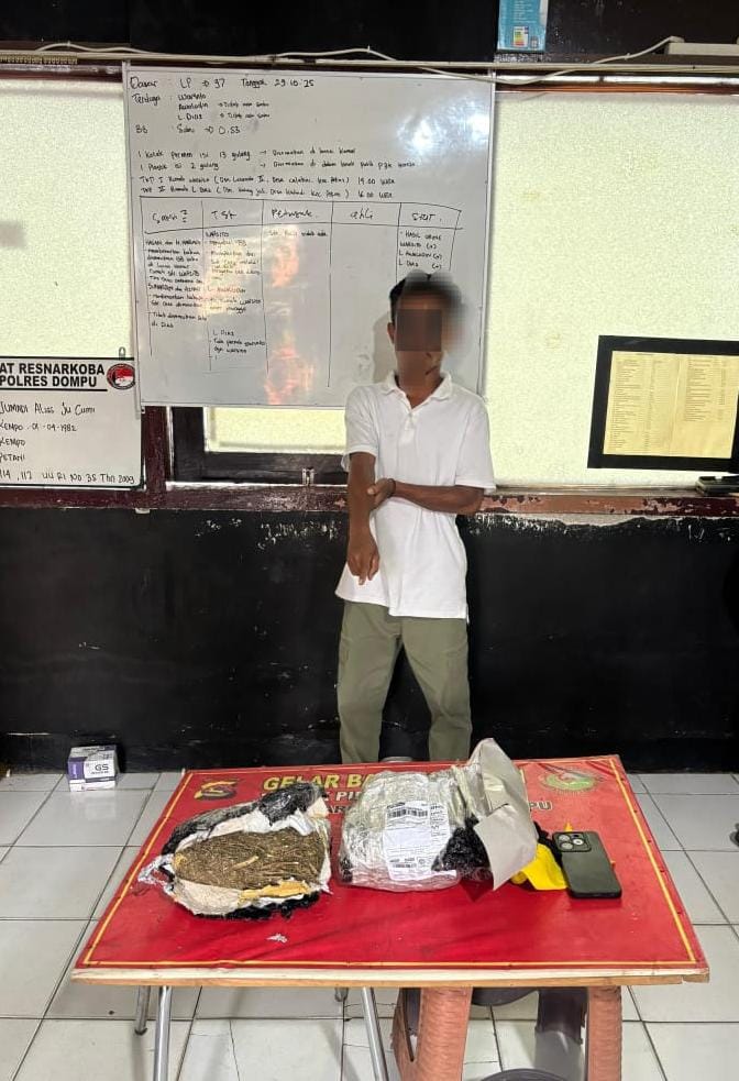 Penangkapan ini berawal dari informasi yang diterima dari Direktorat Resnarkoba Polda NTB pada Rabu, 12 November 2025 terkait adanya satu paket kiriman melalui kantor pos yang diduga berisi ganja dan ditujukan ke wilayah Kabupaten Dompu. Menindaklanjuti informasi tersebut, Kasat Resnarkoba Polres Dompu IPTU Rahmadun Siswadi, S.H. memerintahkan KBO Resnarkoba IPDA Sumaharto bersama Tim Opsnal untuk melakukan penyelidikan.